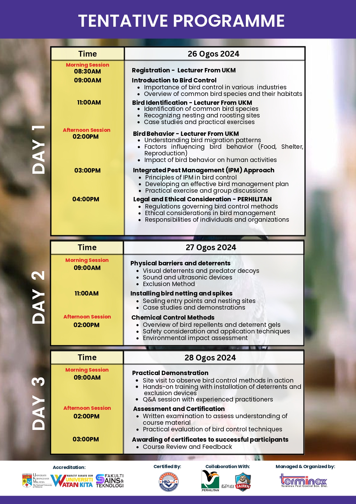 BIRD PEST MANAGEMENT TRAINING REVISED